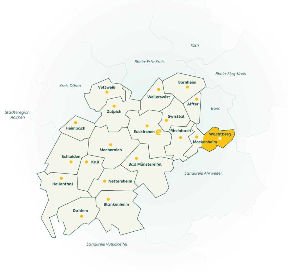 e-regio ist Ihr verlässlicher regionaler Anbieter für Solar in Wachtberg. Seit über 90 Jahren sind wir zwischen Rhein und Eifel verwurzelt. In gleich zwei Kundencentern in Ihrer Nähe stehen wir persönlich für Sie bereit.